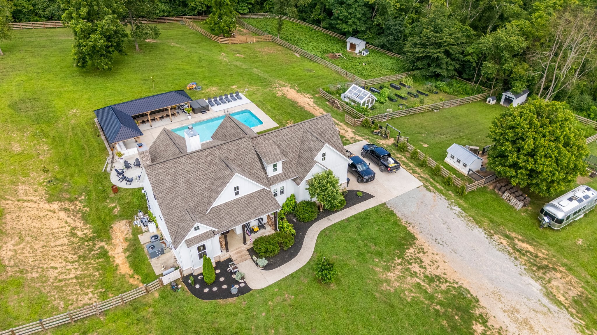 Are you looking to escape the hustle and bustle of the city and move to the countryside? Or perhaps you're ready to start your own homestead? If so, then this private property, with a gated driveway, is perfect for you! Conveniently located only 15 minutes from Spring Hill and 4 minutes to I-65, the property spans 21.35 acres, giving you plenty of space for cows, horses, chickens, or any other animals you desire. The property also features an established garden and a greenhouse for all your gardening needs. The new 36x48 barn features a concrete floor and has been recently wired with a 200-amp panel, complete with lighting and outlets. Most of the property is fenced and cross-fenced to keep your animals safe and contained. You won't have to worry about power outages, as there is a Generac whole-house generator with 1,500 gallons of buried propane tanks. During the hot… Read Moresummer days, you can cool off in the large pool, and the new pavilion nearby provides shade on sunny days. The custom farmhouse-style home, built just five years ago, offers over 3,000 square feet of living space. It features 3 bedrooms and 2 bathrooms on the main floor, along with 3 additional rooms upstairs that can be used as bedrooms, a large multipurpose room, and a full bathroom. The kitchen and dining room are designed in an open floor plan, flowing nicely into a cozy, well-lit living room that includes a wood-burning fireplace. Chicken coop, sheds and all other outbuildings convey with the sale. Animals, tractor and other equipment negotiable. Pool equipment is all brand new and the pool has a heater as well extending the swimming season. The property is in the greenbelt program, saving money on taxes!Read Less