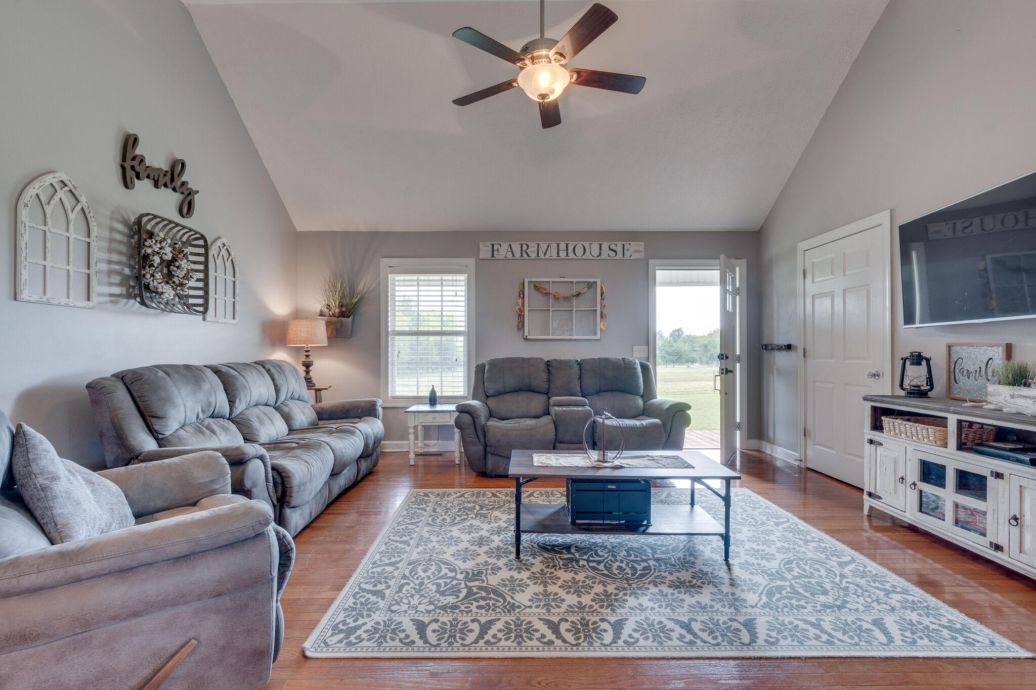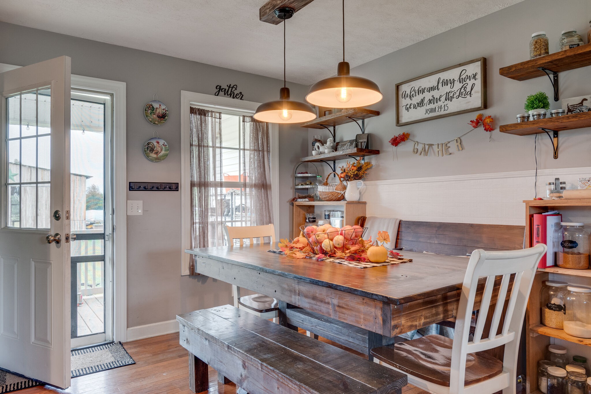Come check out this cozy farmhouse on 5+ acres. Sit in your rocking chair and enjoy the serene view on the front porch. Beautiful land, fully fenced and crossfenced with several outbuildings/shelters and a pond. Custom barn built from hand milled telephone poles, with water, electricity, a hayloft and a enclosed room used for goat milking. This minifarm is a dream for the homesteaders out there with hardwood floors and high speed (200mbps) internet!